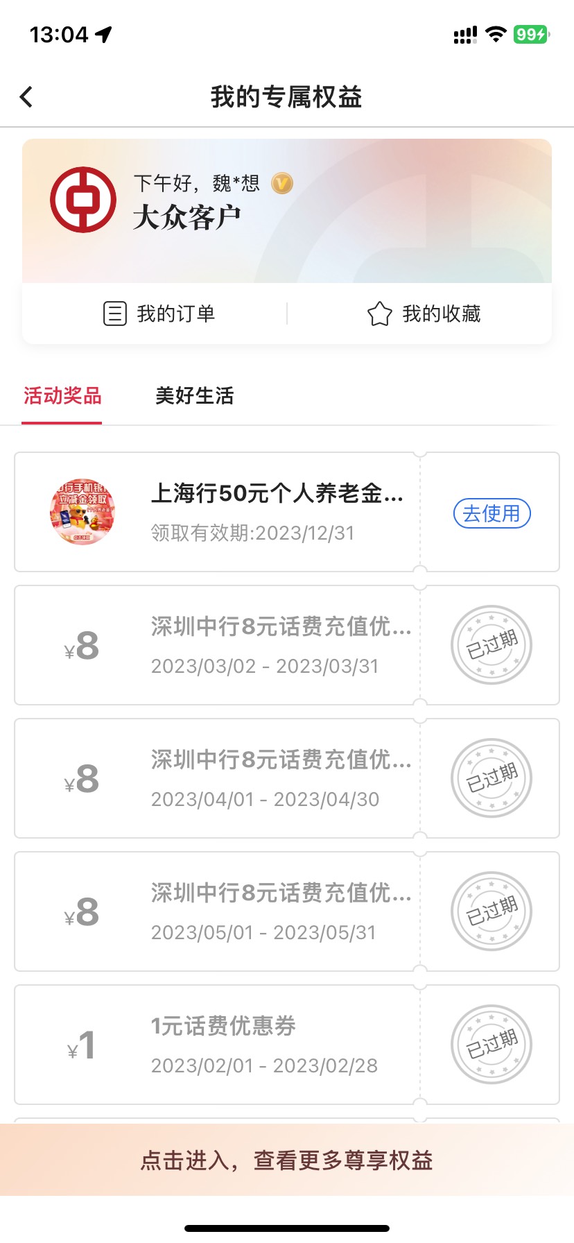 中行以前开过上海养老账号,可以在领一次,在我的权益里面