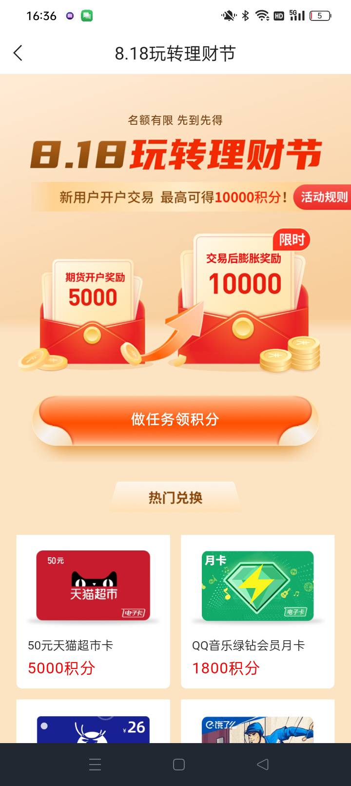 南华期货818理财节,冲开户5000积分,交易后10000积分