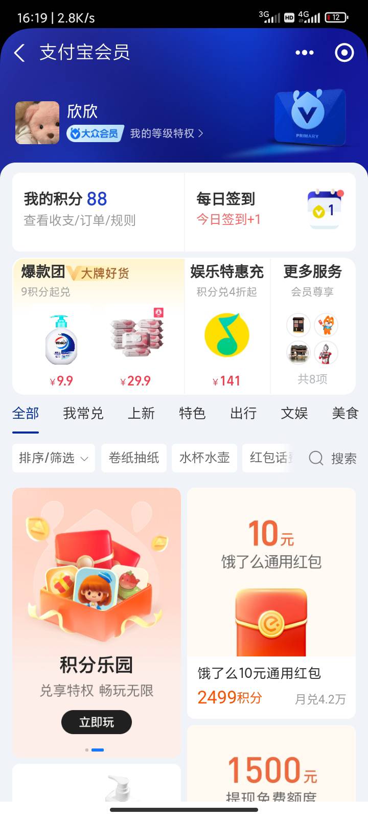 首发,支付宝积分有饿了么10无门槛 可以看看附近便利店15起送的看看