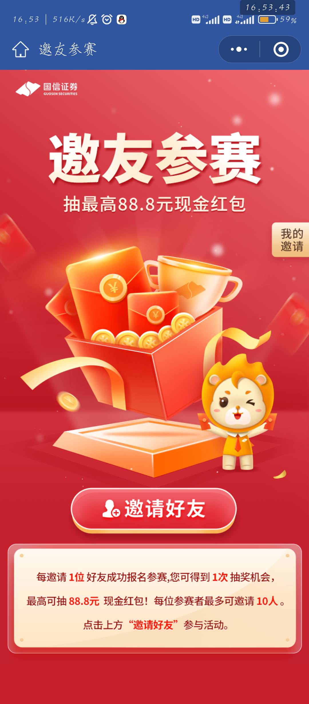 国信证券ETF报名,报名可以抽奖一次邀请好友报名增加抽奖次数。需要资金号没弄的可以去博博运气。