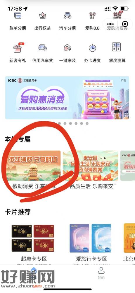 工行首页-点开选择地区分会-完成访问二个任务-给一个优惠券,