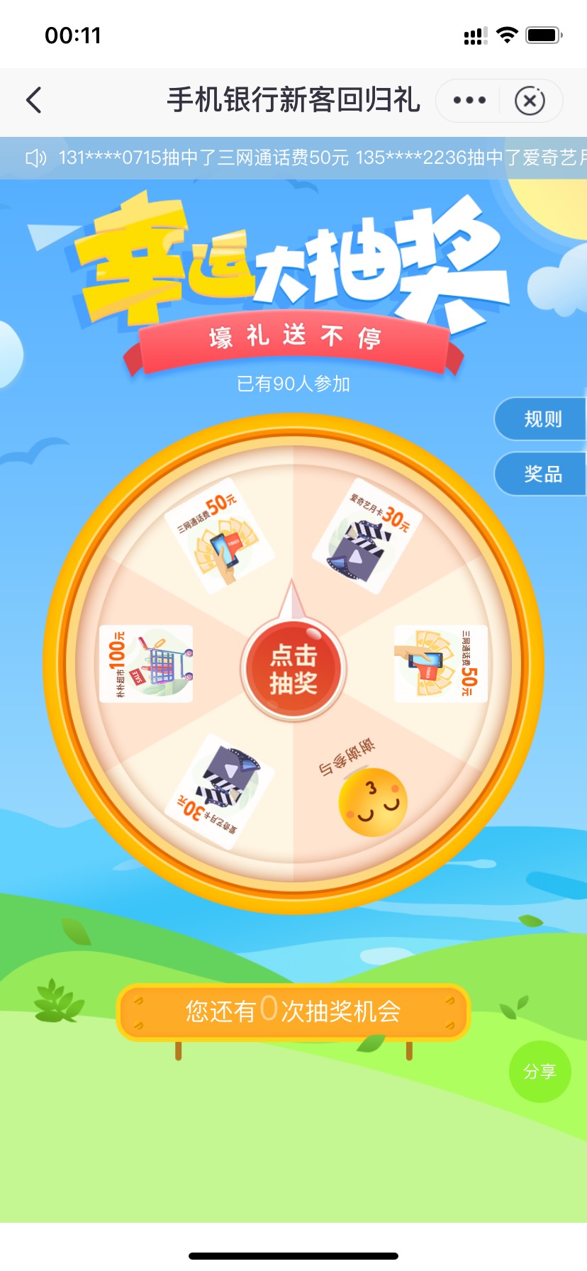 深圳邮储老哥们去看看刚中50话费