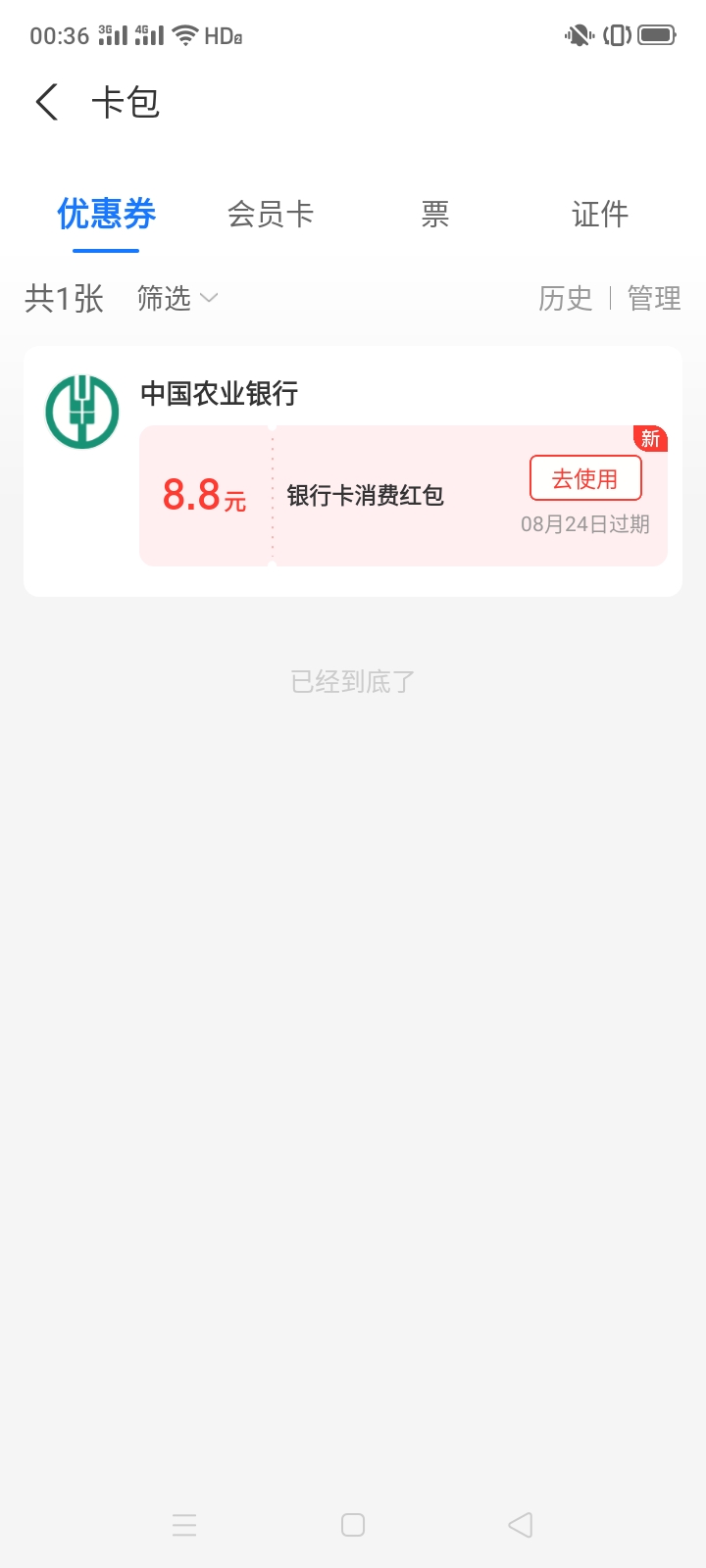 未实名支付宝首绑合肥农行二类实体卡给了8.8