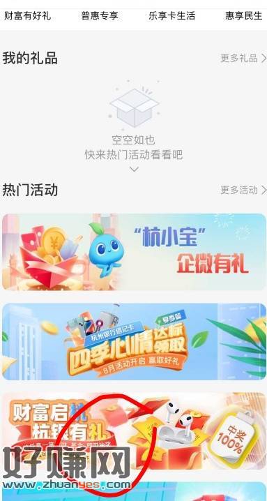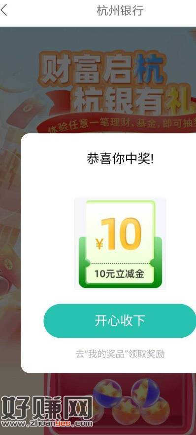 杭州银行买1理财等第二天抽奖,权益中心第三个