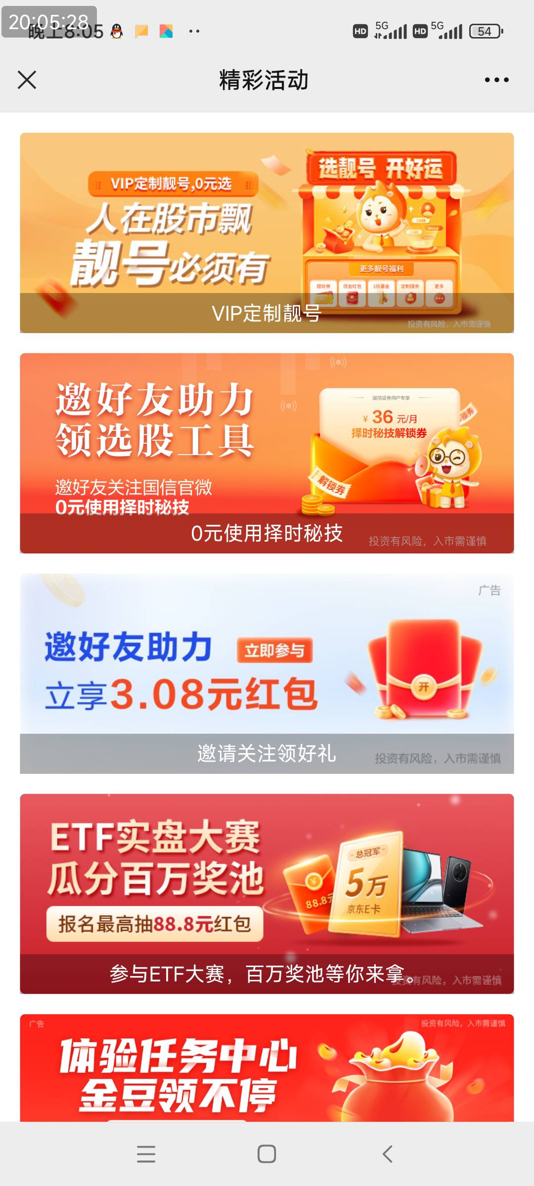 发个小毛,国信证券公众号右下精彩活动进去拉6个小号关注公众号可以得3毛