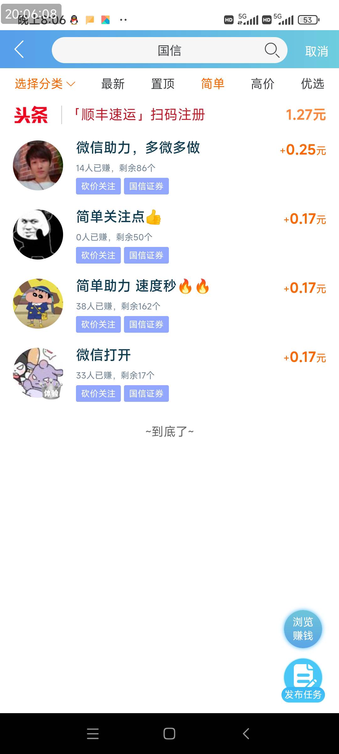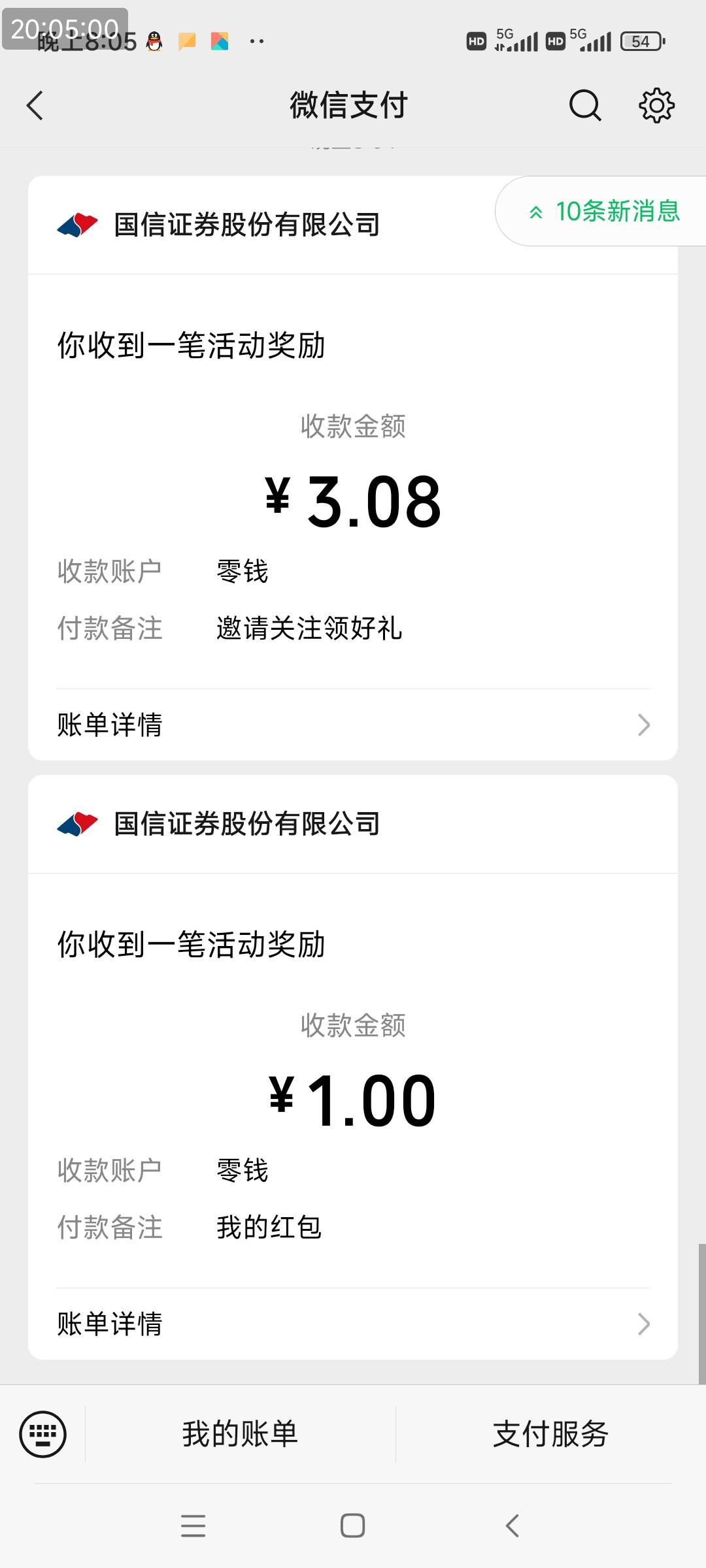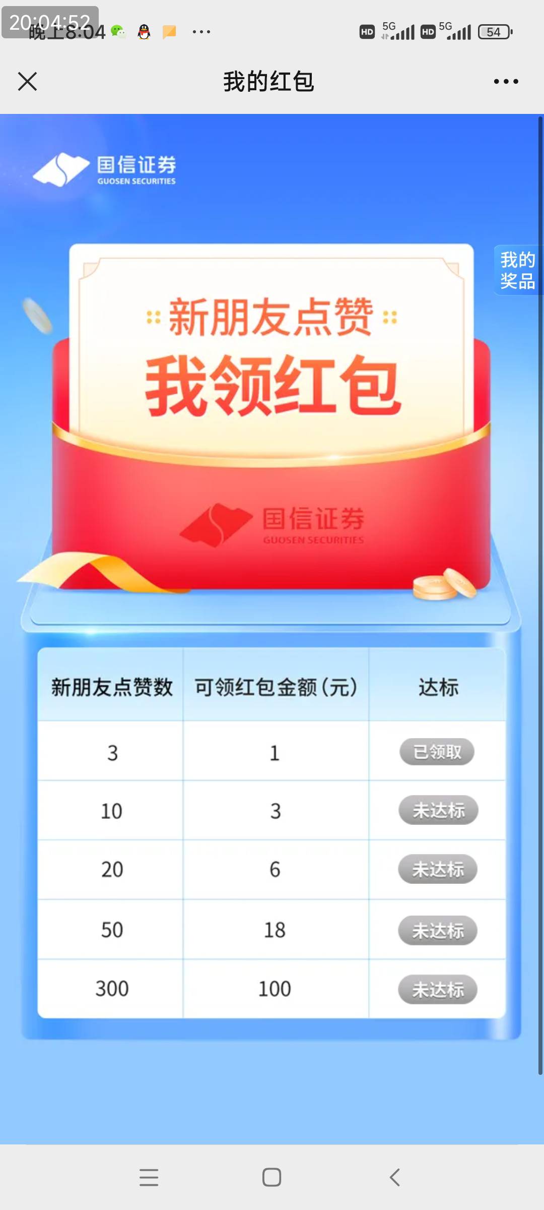 发个小毛,国信证券公众号右下精彩活动进去拉6个小号关注公众号可以得3毛,另外一个点赞的活动刚才有老哥发过,找不到入口的趣闲赚有,但拉300个人没那么容易