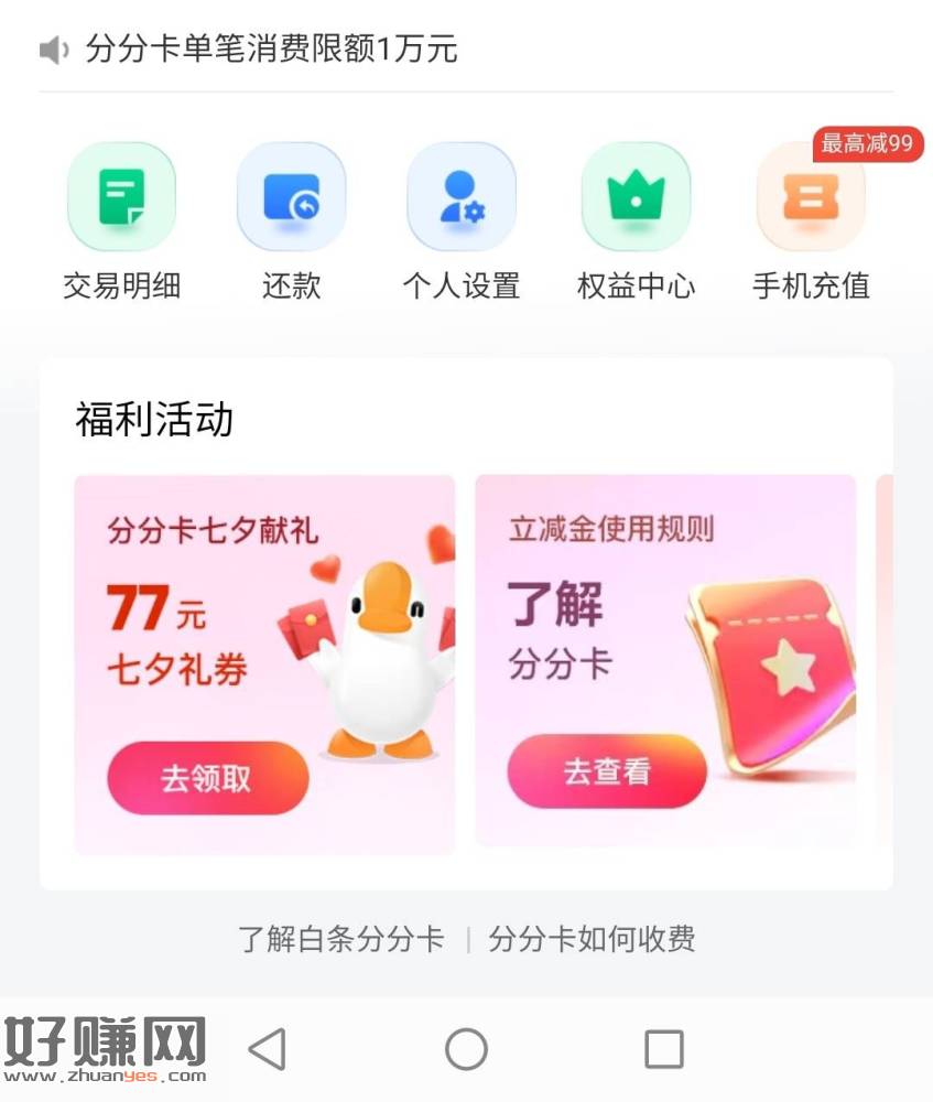 路径:京东金融首页白条 微信打白条 福利活动 分分卡七夕献礼