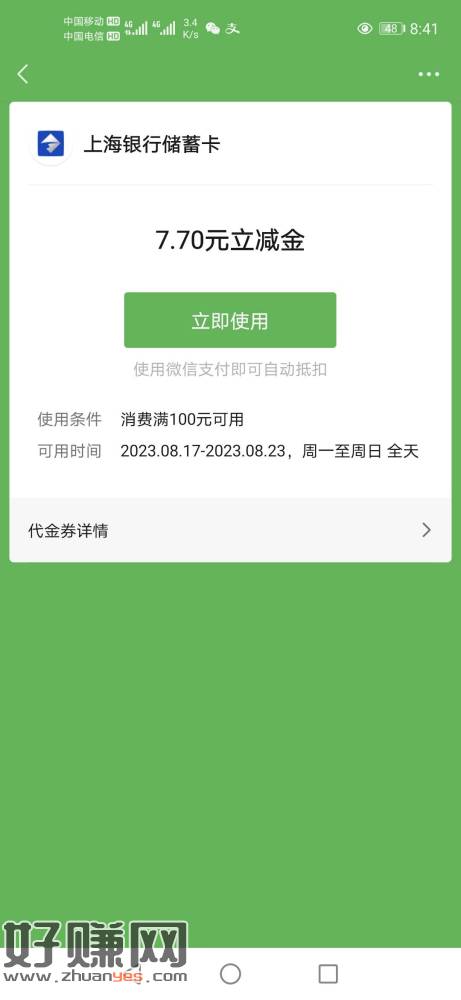 南京银行送了张券