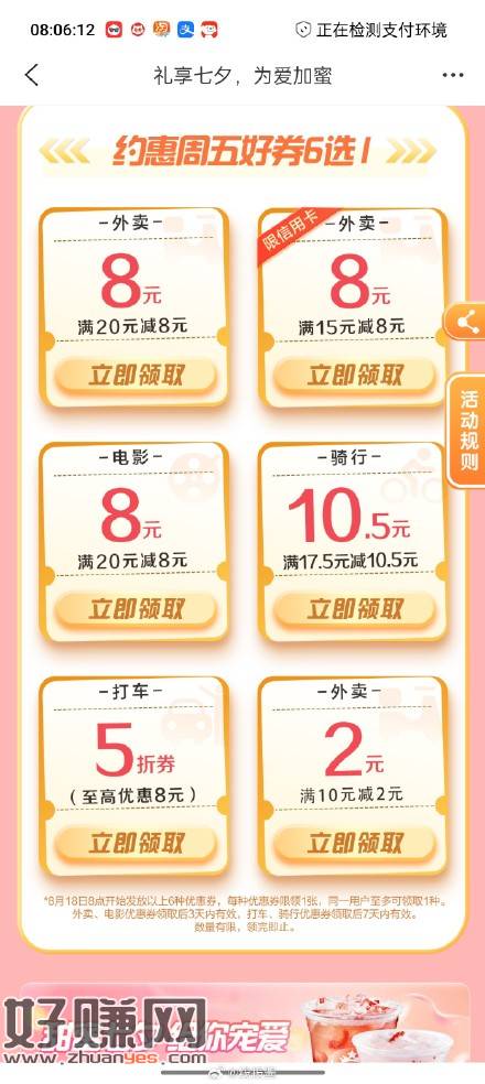 建行生活首页七夕活动,下拉10-2还有,11点有电影和外卖