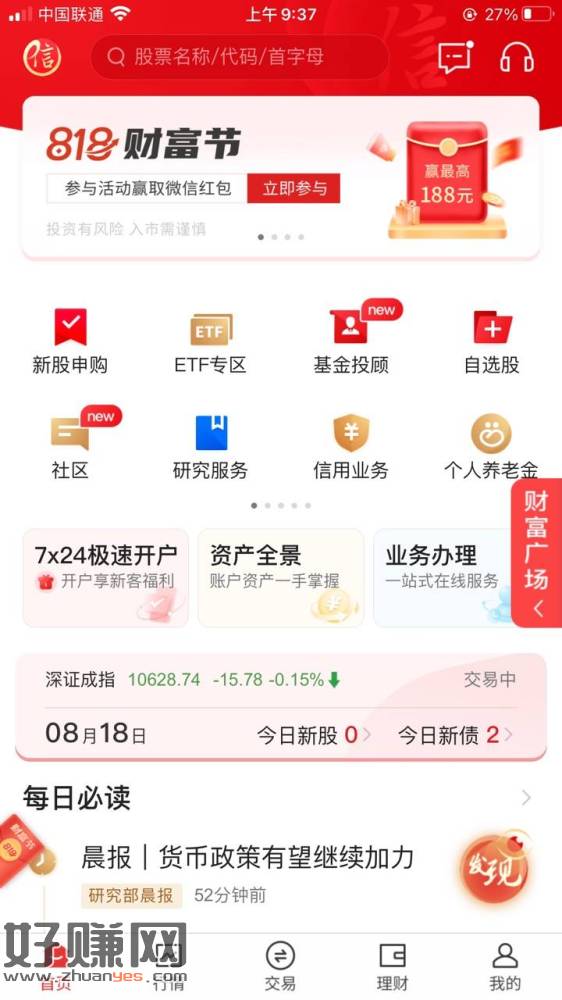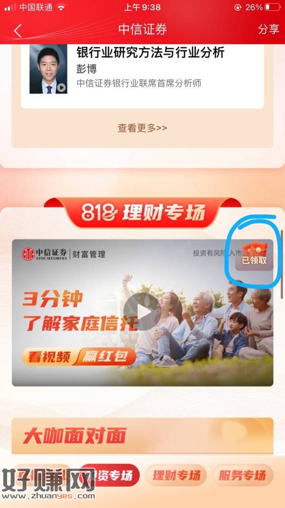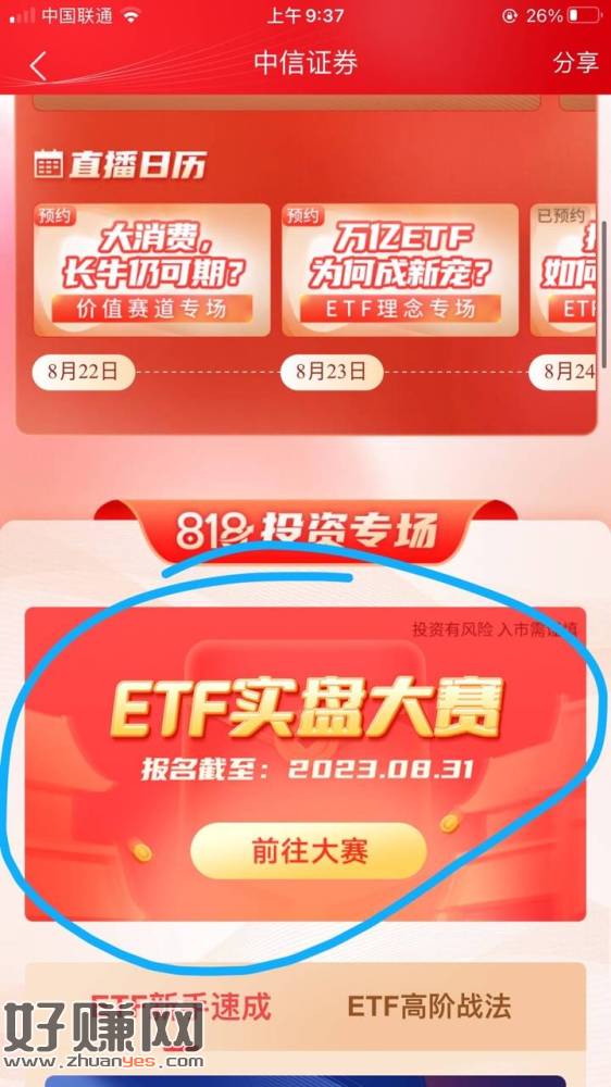 下载中信证券app 有资金账户的参与,没有的不介意开了,两个活动,首页818财富节进去下拉到图中标注的位置领