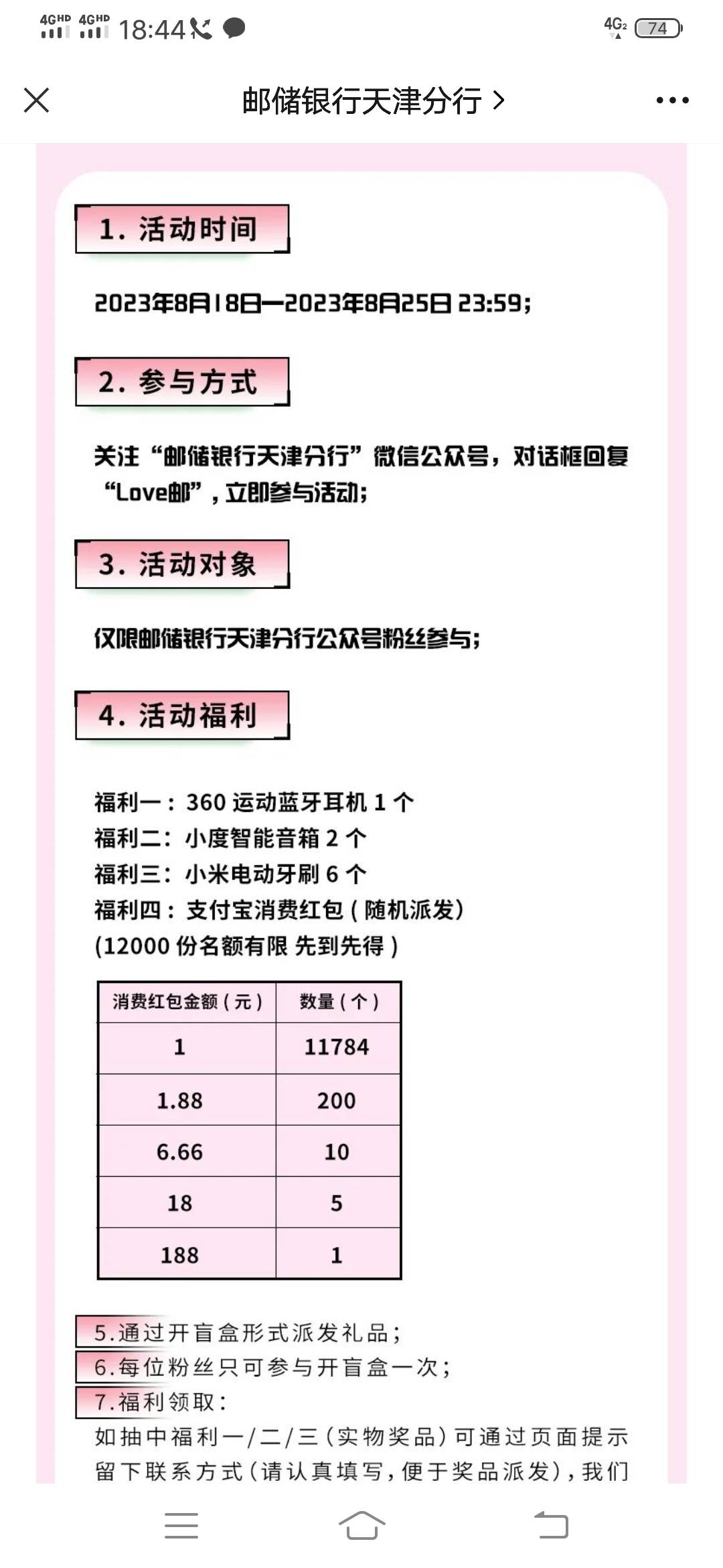 卡农不缺好运苟,天津邮储公众号推文,开盲盒,8个微不中