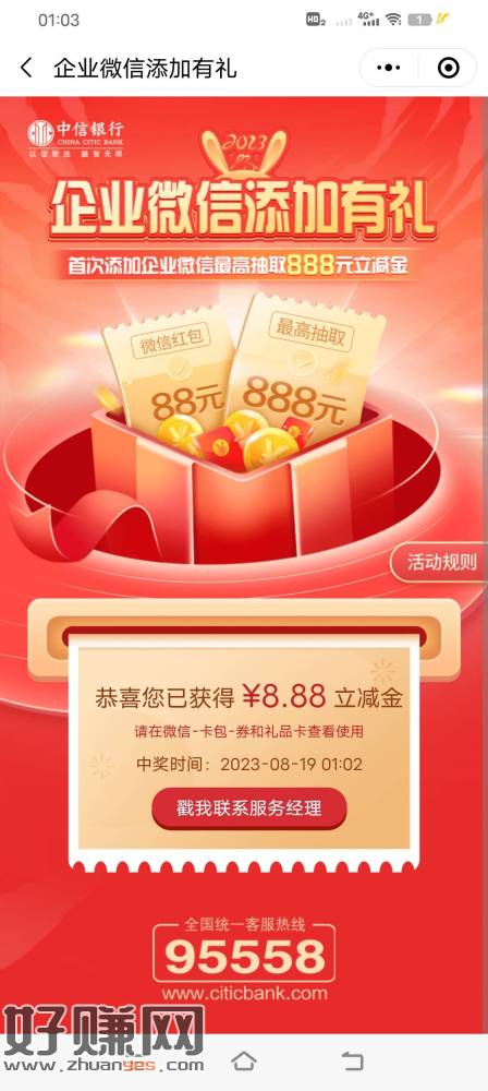 中信银行app添加有礼,有二类三类卡的去