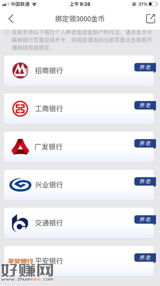 华宝基金app,有以下银行养老金的参与,首页横幅绑定得3000金币,可兑30e卡,金币好像在活动结束5天内发放