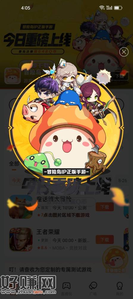 九游APP-顶部横幅【冒险岛·枫之传说】-点击下载游戏-下载完成不要安装-活动页面下拉直接抽奖-中Q币去填写QQ号,不秒到