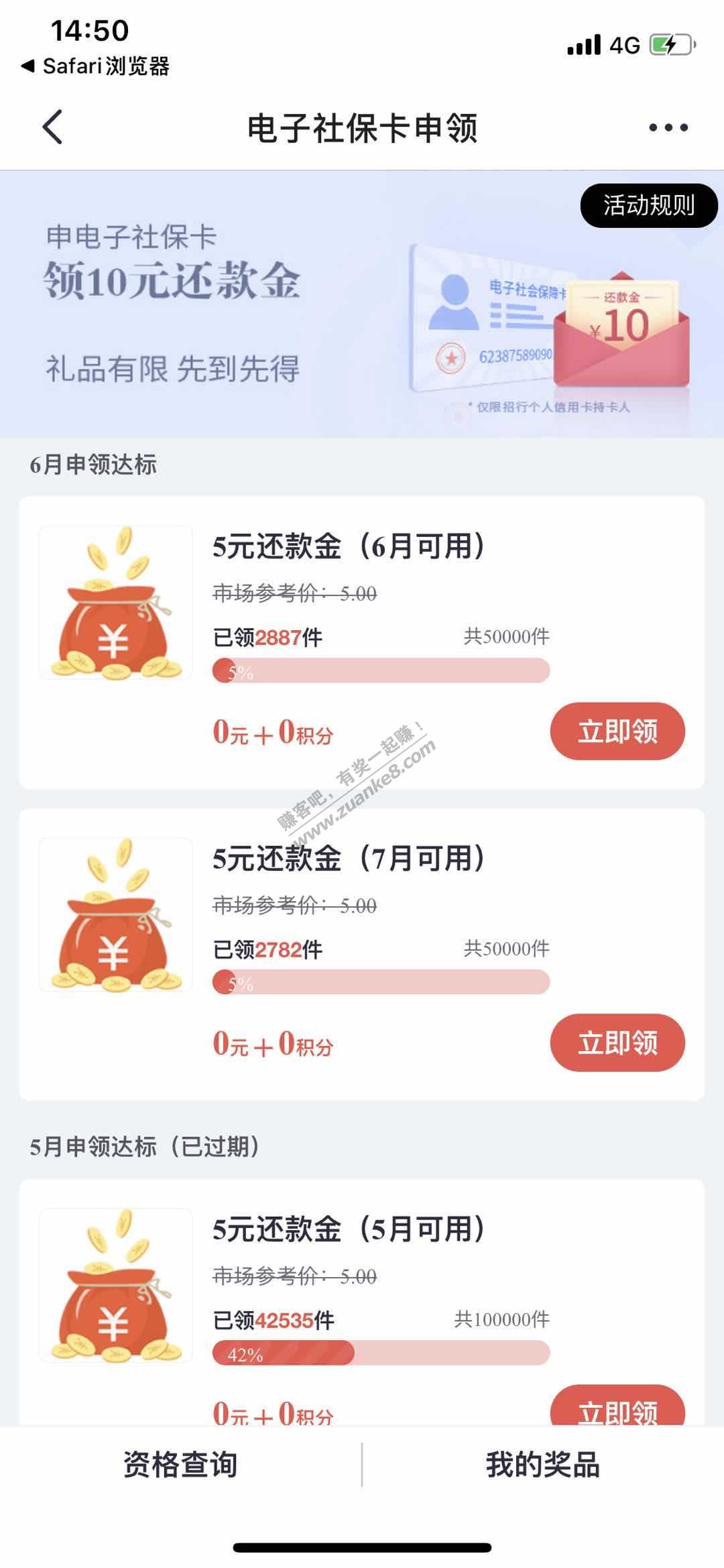 ZS[掌上生活]绑定电子社保领取xin用卡还款金10元