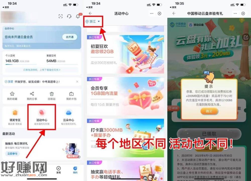 【中国移动云盘领随机话费或流量】新一期!中国移动云盘APP->我的->活动中心->每个地区的活动都不一样->根据提示完成任务领话费或流量