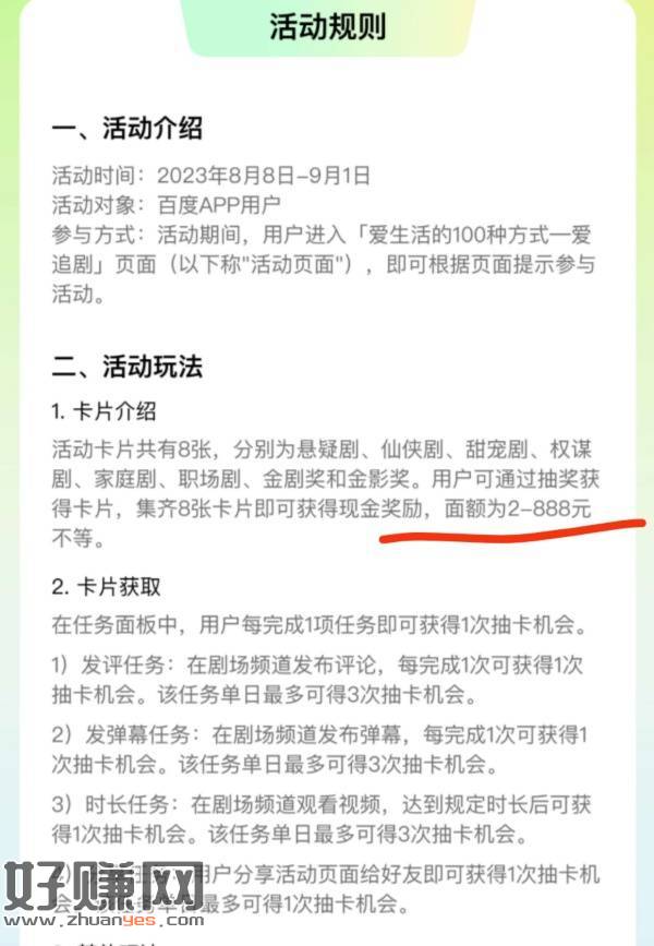 百度app,底部(视频),9.1号之前集够8张卡片可以抽2-888元