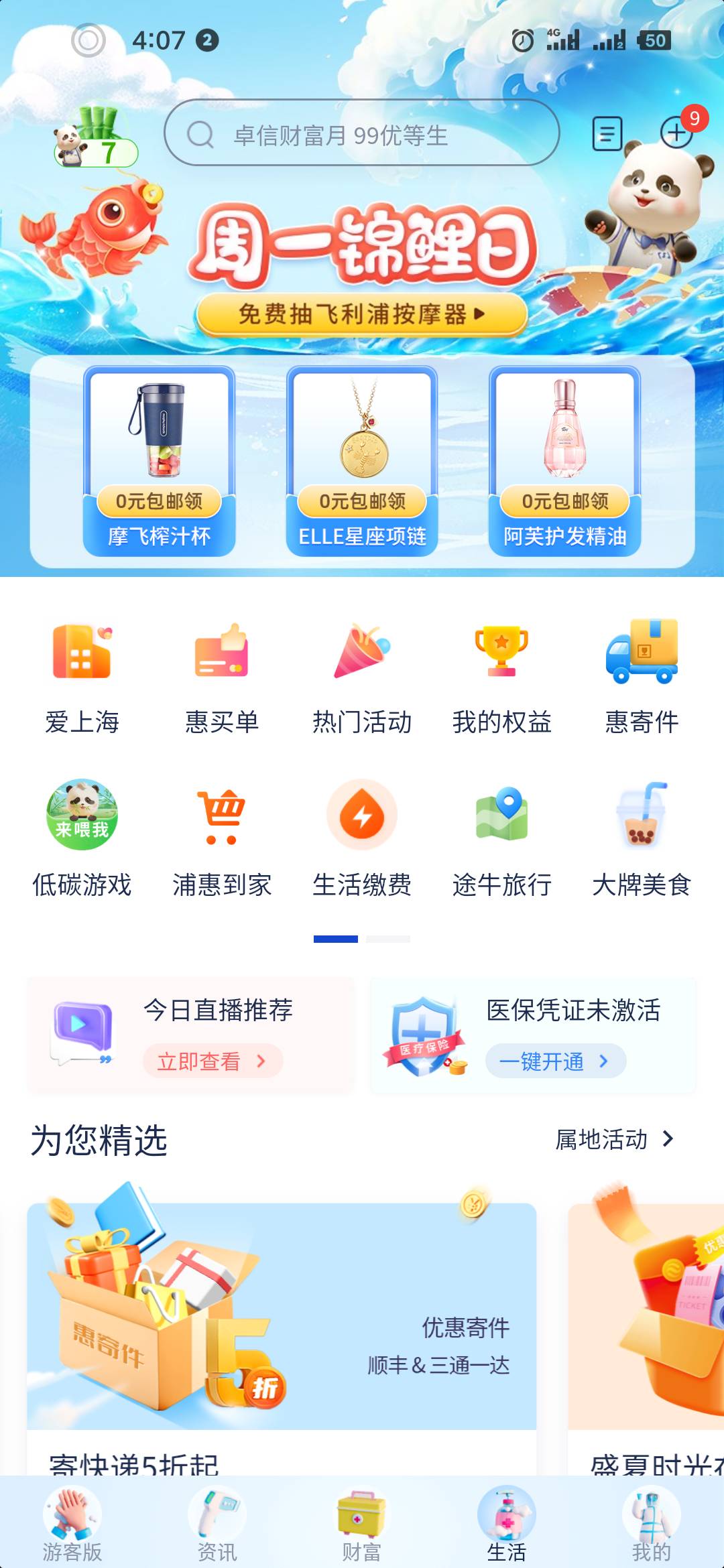 浦发生活里面抽奖,下面三个都可以点进去申领一下