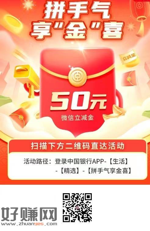 河北中行手机银行扫得50元立减金,只限河北别的地区不用扫。