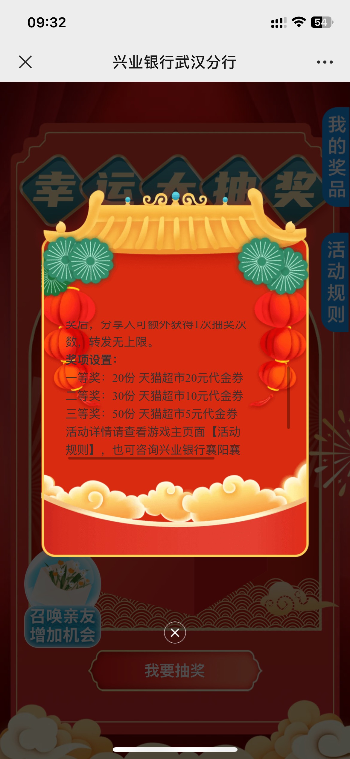 兴业武汉抽奖,好运 去,