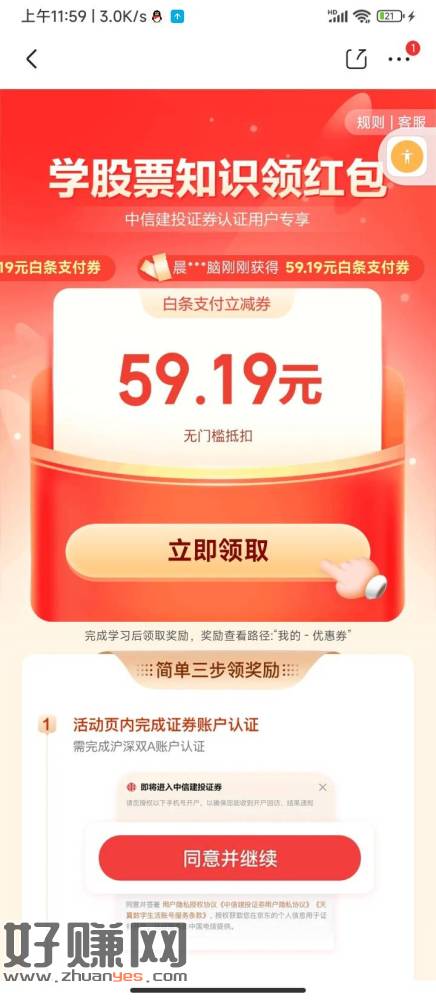 京东金融证券开户30毛 京东开户59.1 京东白条毛