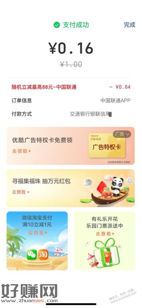 联通APP冲一元话费用云闪付付款