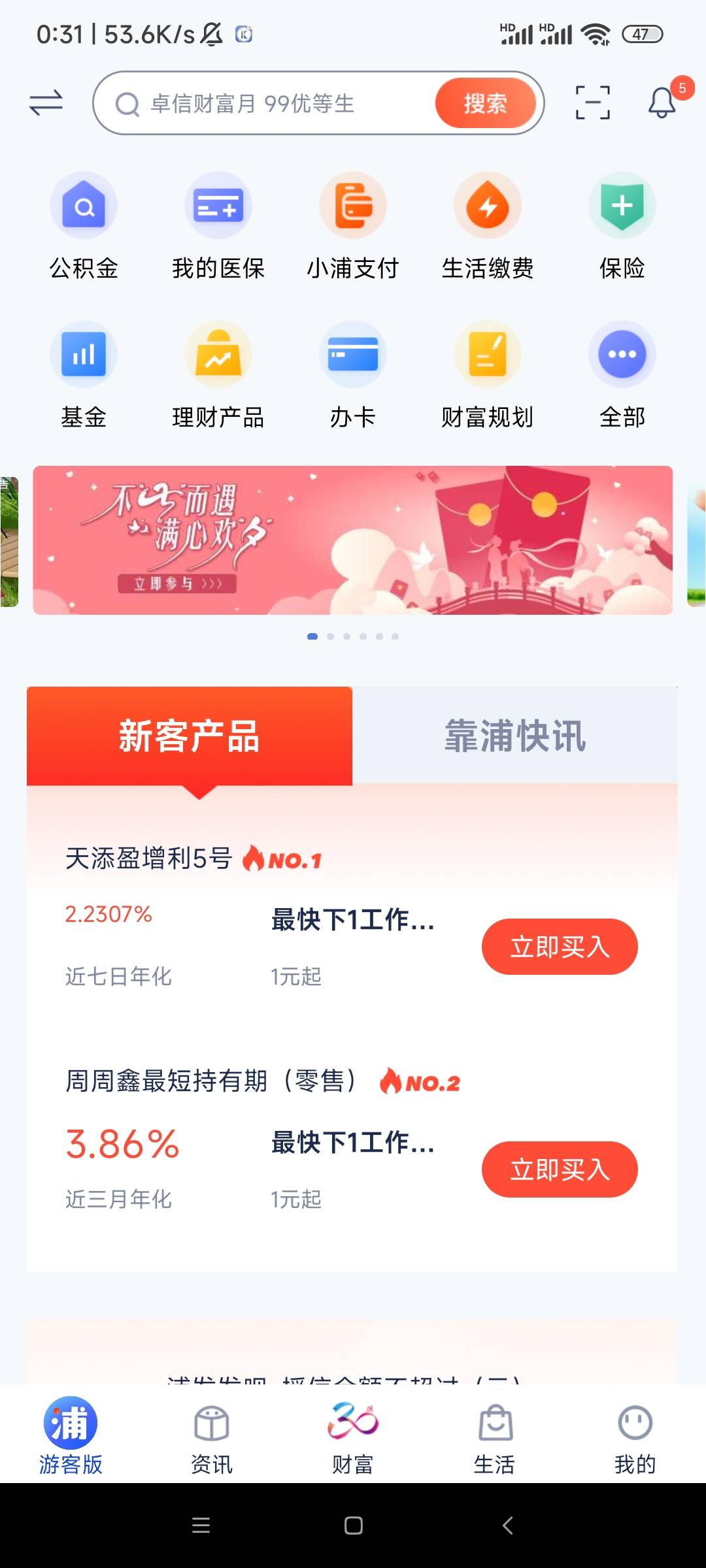 浦发首页横幅,有卡的去试试吧,没卡看你们发财