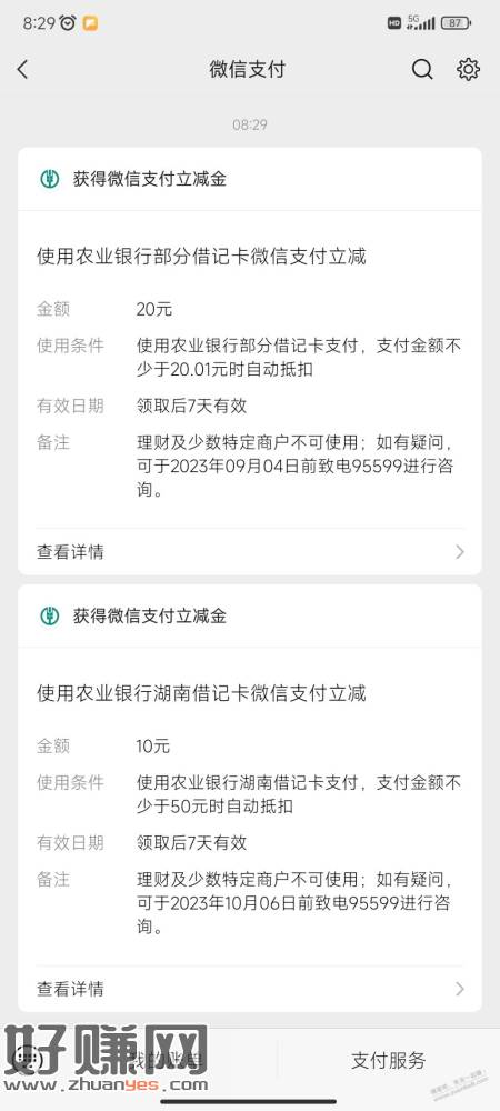 农行app 开湖南株洲电子账户,首次绑定微信自动推20 10立减金!我的不是首次换微自动推的,首绑zfb好像也有20