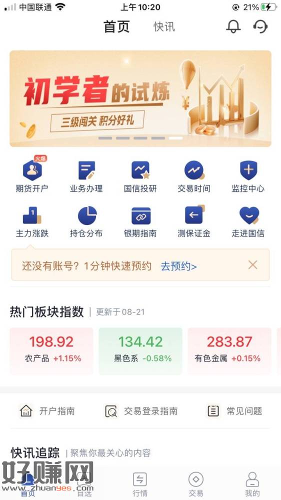 下载国信期货交易版,是红色的app,别下错了,横幅第4个初学