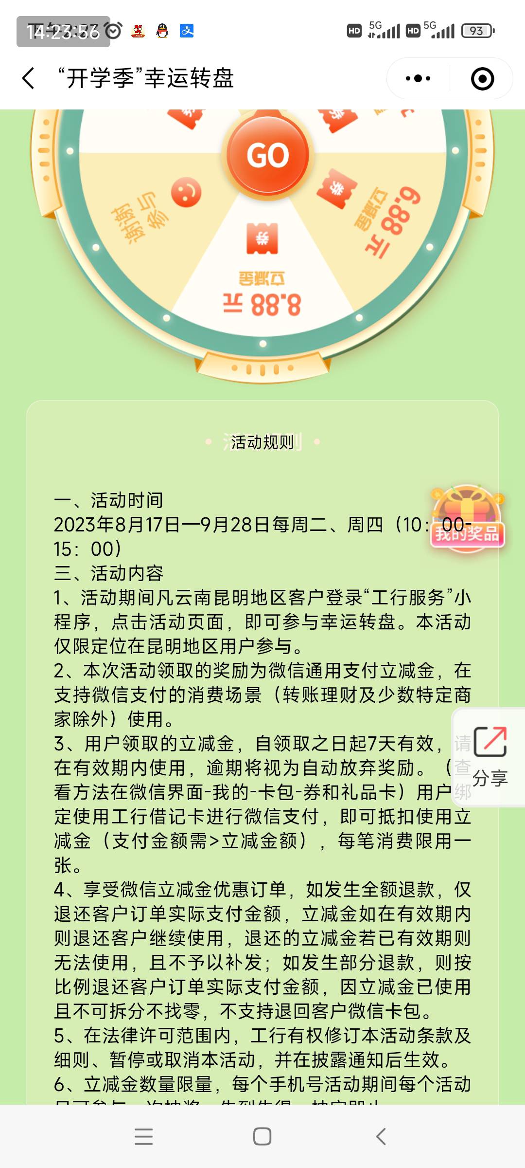 小程序工行服务,需要定位昆明,最高也才8.8,15.00结束,我也刚发现