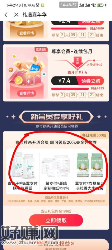 2.4买20物品 翼支付-权益 横幅嘉年华 开通2.4元会员 然后重新进领下边的福利 数量有限 领完去支付设置里取消代扣