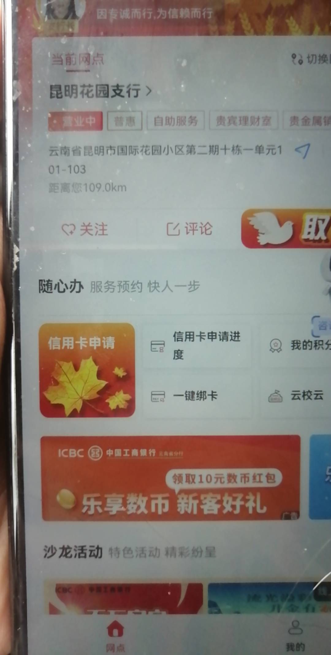 老哥们,V定位昆明,工行服务小程序随心办下面的横幅找到新客乐享和出游好礼,分别可以领到10和20数币,冲啊,多号多撸