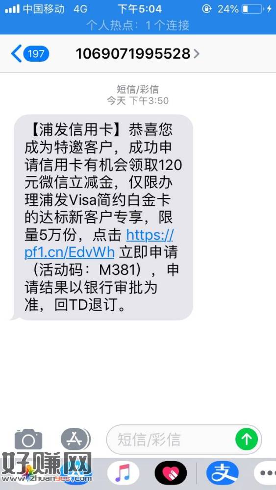 【浦发信用卡】恭喜您成为特邀客户,成功申请信用卡有机会领取120元微信立减金,仅限办理浦发Visa简约白金卡的达标新客户专享,限量5万份,点击