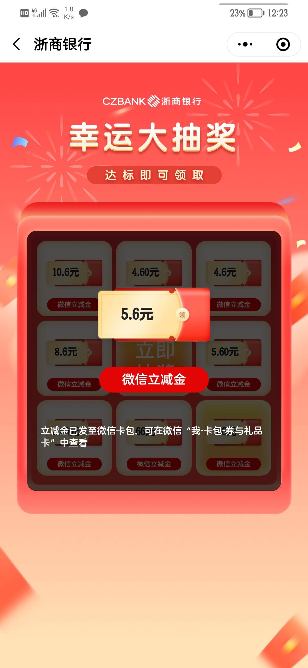 首发嘉靖,浙商公众号绑定卡抽奖保底,4.6