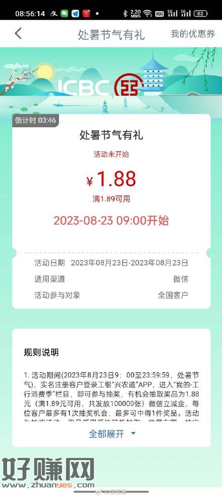9点开始,工银兴农通APP-我的-消费券,有1.88,