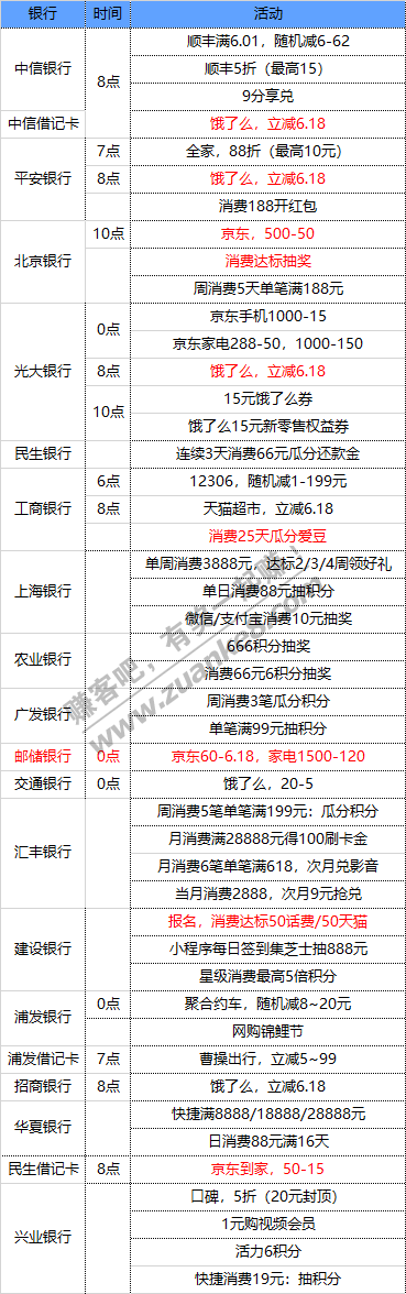 6月11号周四 各大银行活动优惠