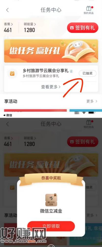 工银兴农通app 我的 任务中心 有这个任务的 分享抽试试 刚中5立减