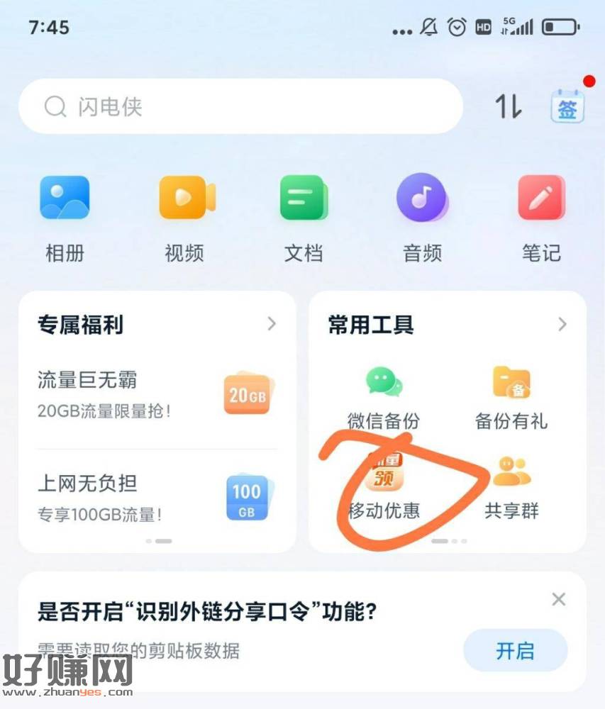 广东移动云盘app,首页右上方移动优惠进去自动弹