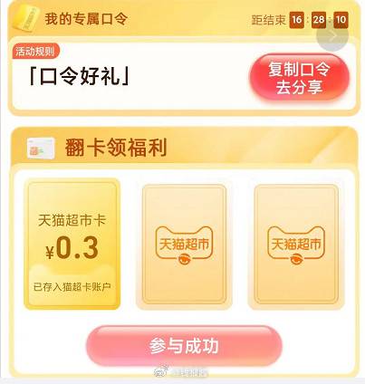今日惊喜口令是【口令好礼】,每日翻牌有猫超卡