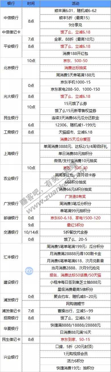 6月12号周五 各大银行活动优惠