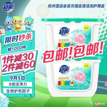 29.9,超能 防串色浓缩花香型洗衣凝珠8g*50颗*2盒