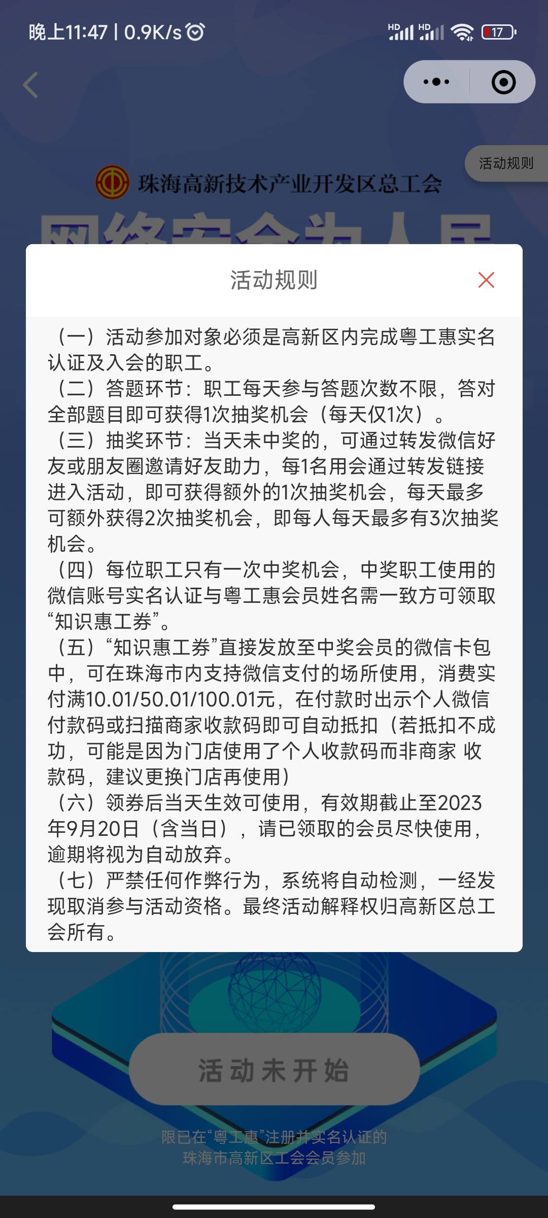 首发,明天十点珠海工会高新区工会成员答题抽惠工券,有10,50,100,在高新区的可以去搞一搞
