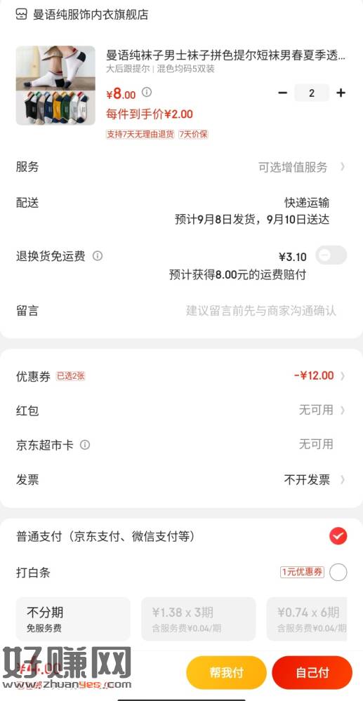 6双袜子2.98