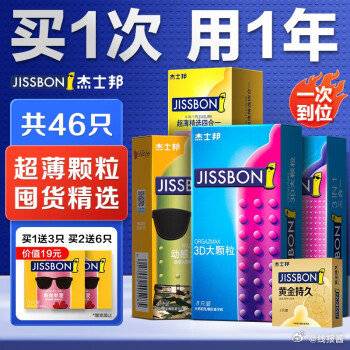 截止0点,杰士邦 避孕套含赠共46只,2件39.9