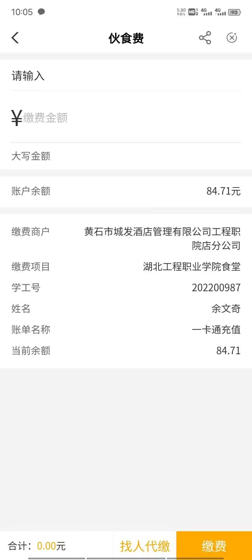 本帖最后由 卡农超管 于 2023-9-7 10:16 编辑 农行湖北工程职业学院食堂伙食费