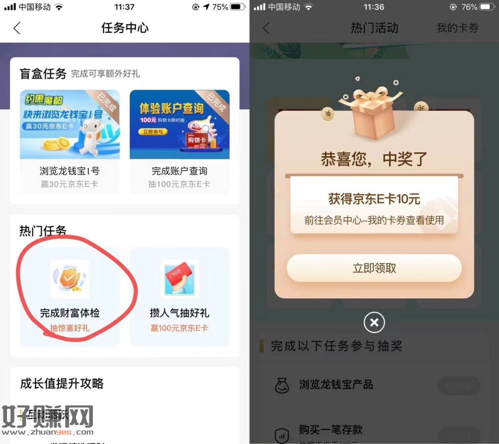 任务中心 有这个任务的 存100抽