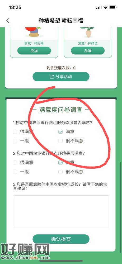 农行城市专区长沙 浇灌之后 再把问卷调查弄了 俩个3.8