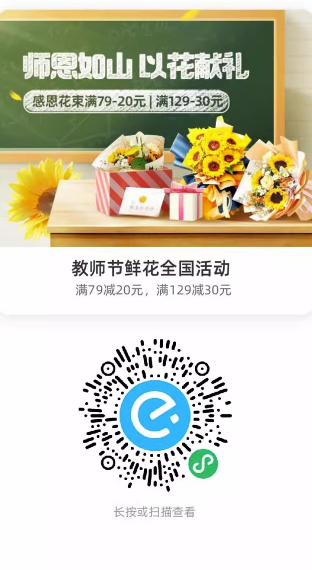饿了么,教师节可领鲜花79-20和129-30,水果榴莲有99-30等