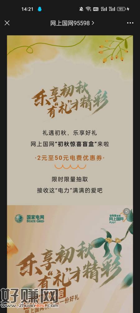 国上国网,点图抽盲盒看脸中电费券
