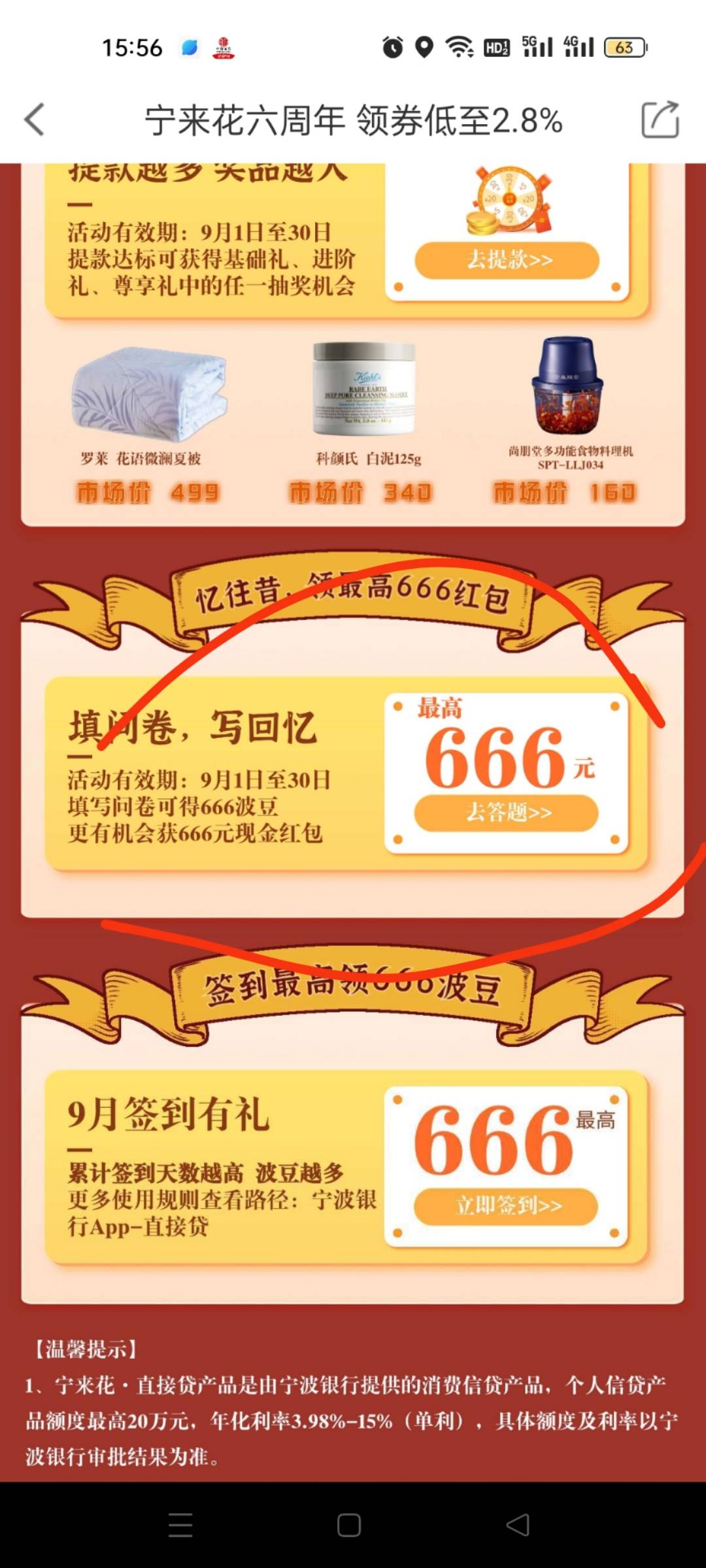 宁波银行APP搜索宁来花如图填问券有666豆可以换5E卡,速度冲